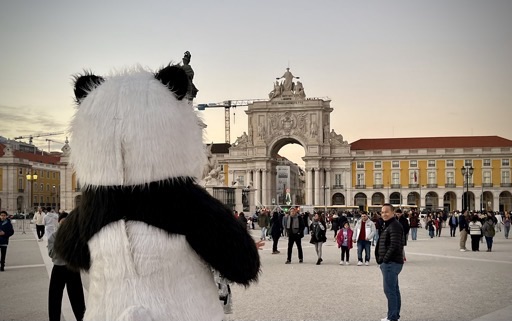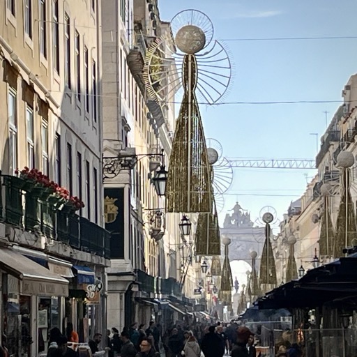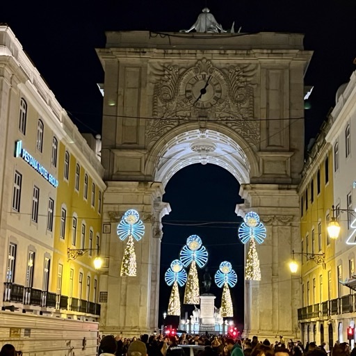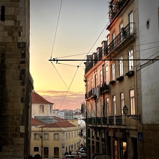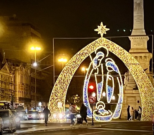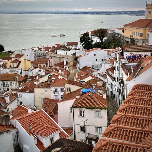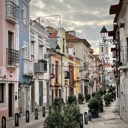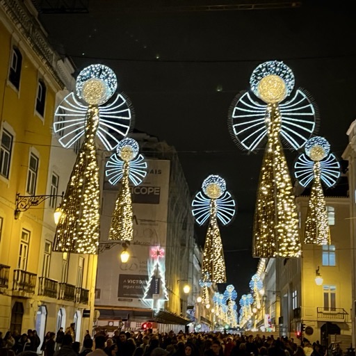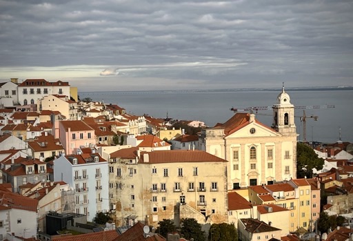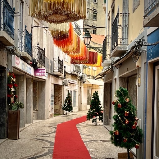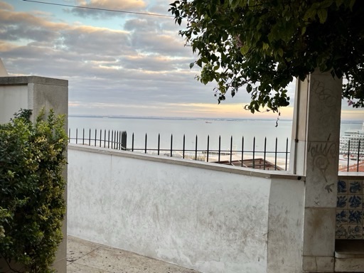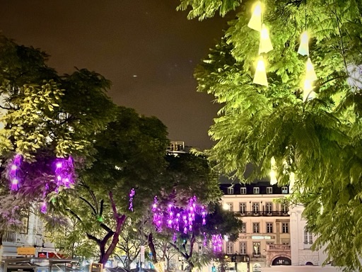 Rooftop view from one of the many MiradouroSun is peeking outCatching the last raysRandom pandaAngels all lit upLanterns in the treesLate night Setúbal heading home