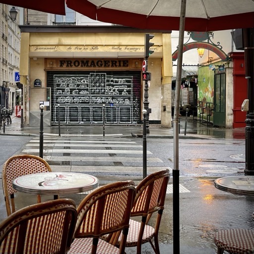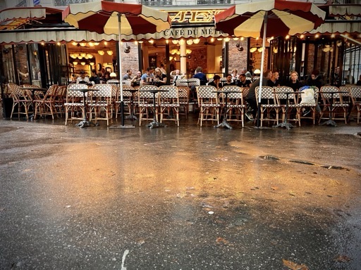 We got there a little too early and most stalls were not even open yet. Since we were ‘a little damp’ at this point, we decided to dry out in a small french cafe watching people in the rain.