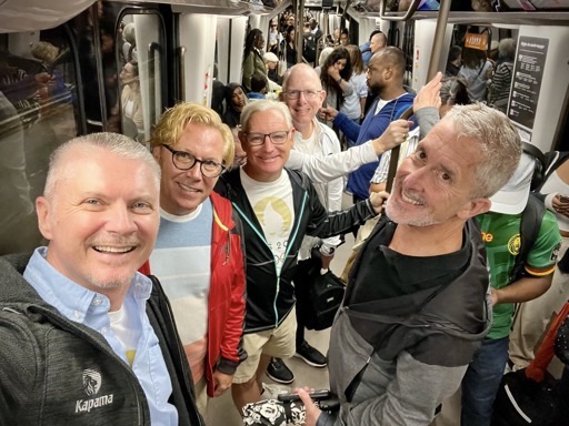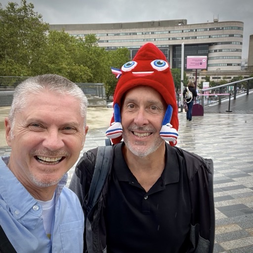 On the metro en route to our first Olympic event.Don’t tell Poody!Of course we wore the shirts for day one.Peter got a Phryghe! Now we can easily find him in crowds.