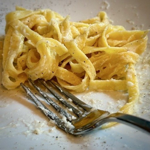At Osteria Why Not Bistro we got a great Prosecco – it is never too early! – and two cicchetti. One was polenta with pickled onions-and-shrimp, and the other is some kind of meatball.